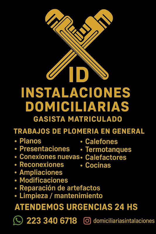 🔥 🚰 Plomero Gasista Matriculado – Mar del Plata 👷 Daniel – Gasista Matriculado Servicios: 🔥 Gasista matriculado 🚰 Plomería en general 🔧 Confecciones y reconexiones 📋 Planos y trámites en Camuzzi 🛠 Asesoramiento y reparaciones ✔️ Trabajo responsable ✔️ Habilitado y matriculado ✔️ Presupuestos sin compromiso 📍 Zona: Mar del Plata